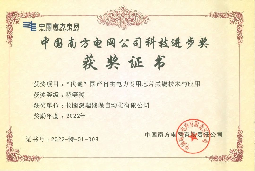 近日,由NG28科技集团旗下子公司NG28深瑞继保自动化有限公司(以下简称“NG28深瑞”)参与的“伏羲国产自主电力专用芯片关键技术与应用”项目荣获中国南方电网公司科技进步奖特等奖。