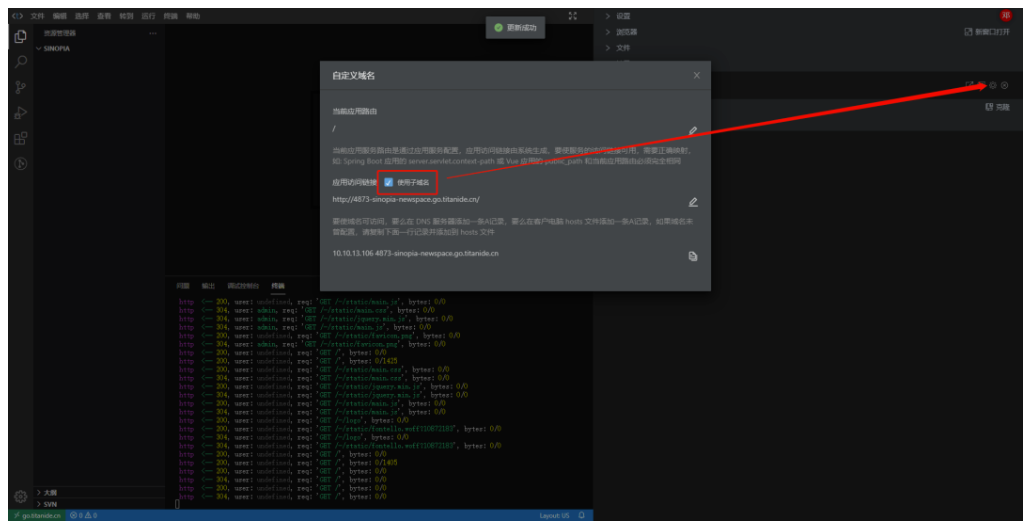 在启动 Sinopia 之后会监听一个指定端口,通过我们的设置可以将它把地址暴露到外面访问,这里我们需要把使用子域名勾选上。